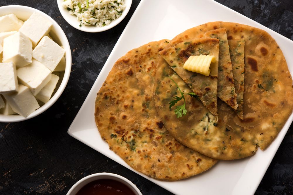 Gobi paratha is a delicious Indian flatbread stuffed with spiced cauliflower filling, cooked to perfection with butter or ghee, and served with yogurt or pickle.